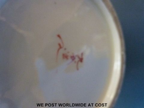 A large twin handled Japanese Kutani pedestal vase, signed to base (33.5cm tall)