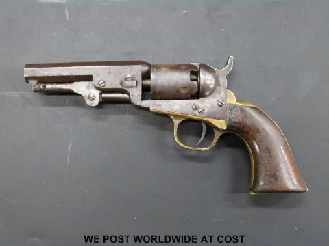 Colt .31 five shot percussion hammer action revolver with 4" octagonal barrel and brass mounts c1854, serial number 880194 (overall length 25cm).