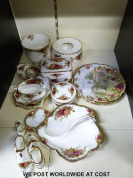 A collection of Royal Albert Old Country Roses including cake plates