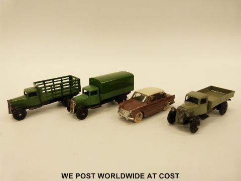 Eleven Dinky Toys diecast model vehicles including aeroplane, military trucks and two double decker buses, 289, both in original boxes