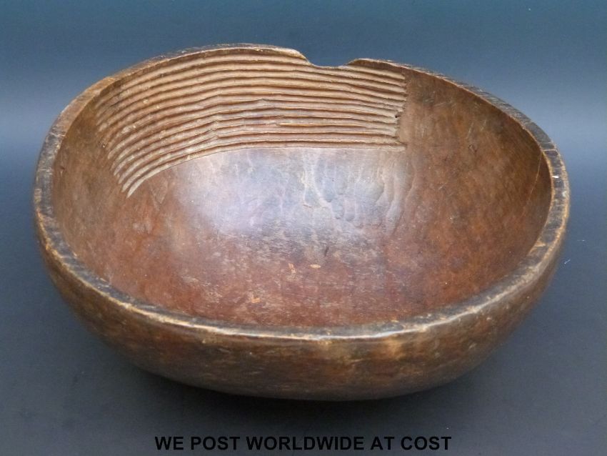 A 19thC carved African bowl with sieve ridges