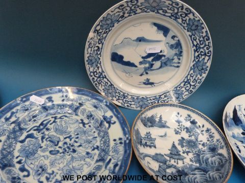 A collection of Chinese blue and white plates to include Kangxi and 19thC (largest 24cm diameter)