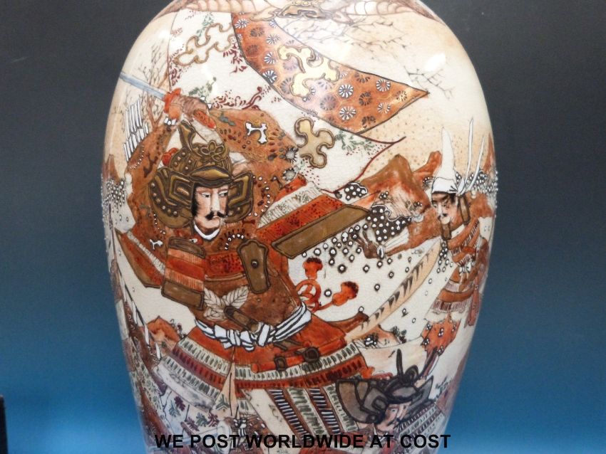 A large Japanese vase with warrior decoration (62cm tall)