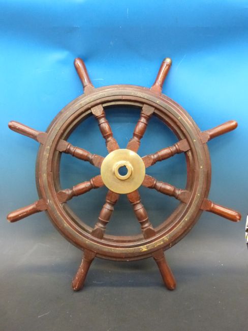 A John Hastie & Co Ltd, Greenock, brass or bronze-mounted ship's wheel (diameter 90cm)