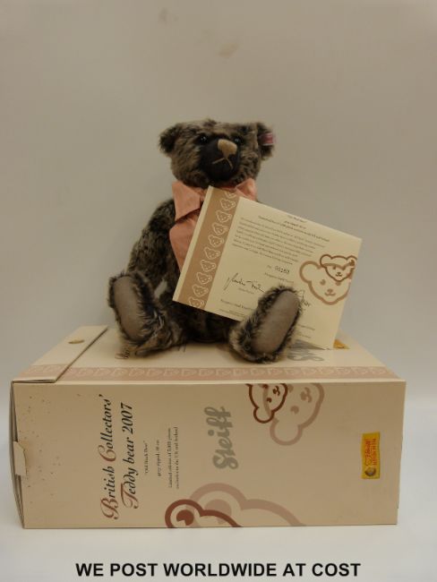 Steiff Original British Collectors' Teddy Bear 2007 'Old Black Bear', 662508, with grey tipped mohair, button to ear, tags and certificate 160/3000, 40cm tall, in original magnetic close box