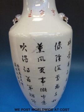 A large Chinese vase with foo dog handles with landscape decoration Ching Dynasty with certificate of antiquity (57cm tall)