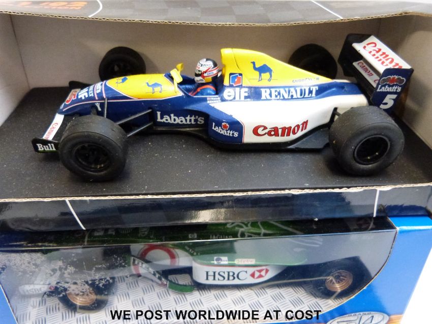 Nine Onyx and other diecast model F1 cars, all in original boxes.