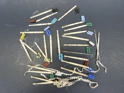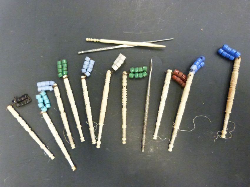 A collection of lace making bobbins