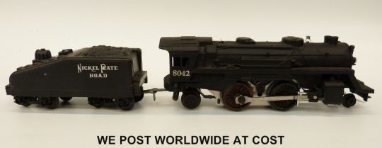 Lionel 0 gauge 2-4-2 locomotive and tender 'Nickel Plate Road' 8042.