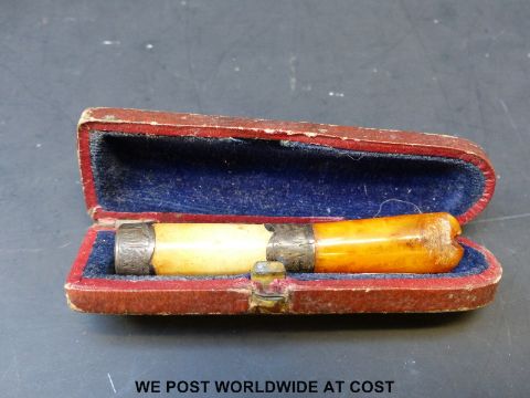 A 19th/early 20thC pipe in the form a ladies' stockinged leg, together with a collection of cheroot holders including cased examples