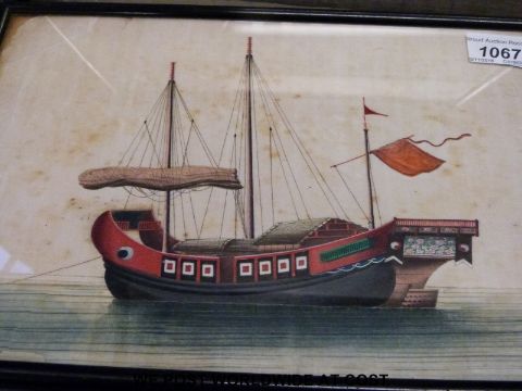 Three Japanese watercolours of boats on rice paper each approximately 19.5x31cm.
