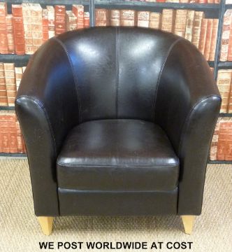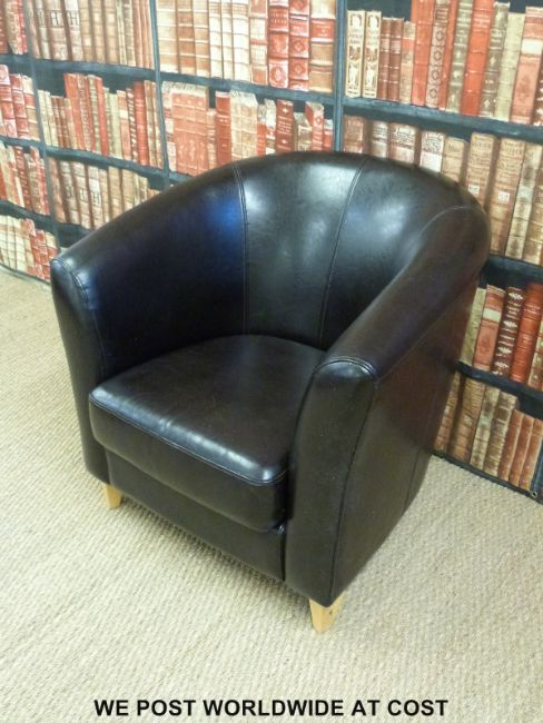 A brown leather tub chair