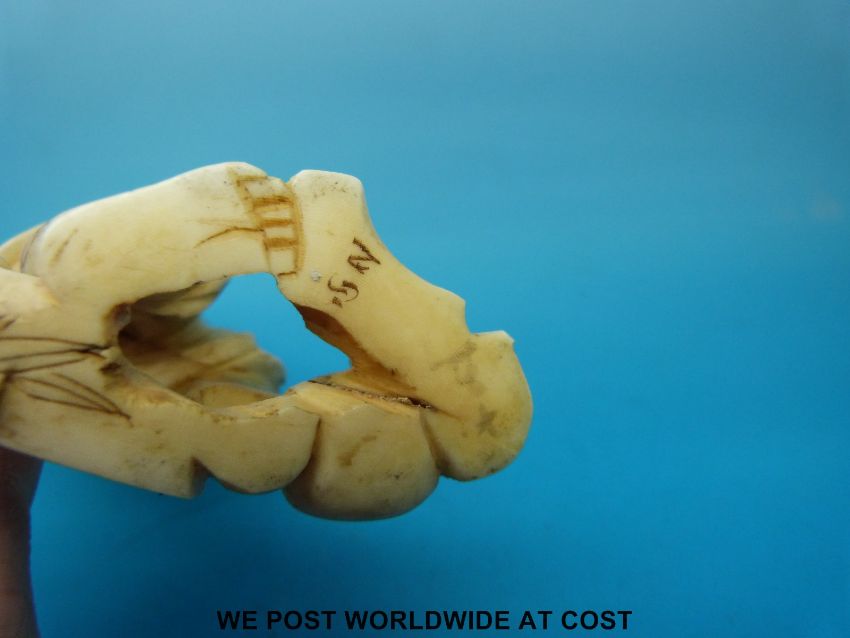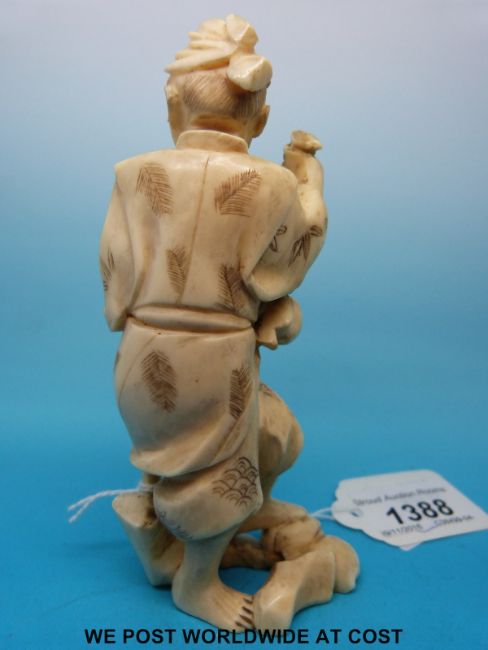 A Japanese Meiji period signed carved okimono of a fruit or gourd gatherer with an axe (12cm tall)