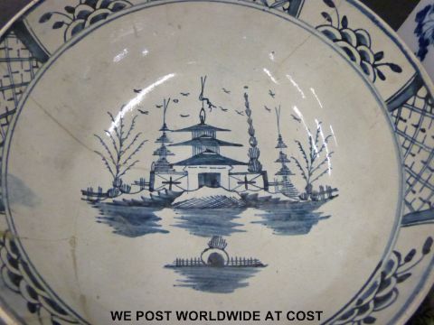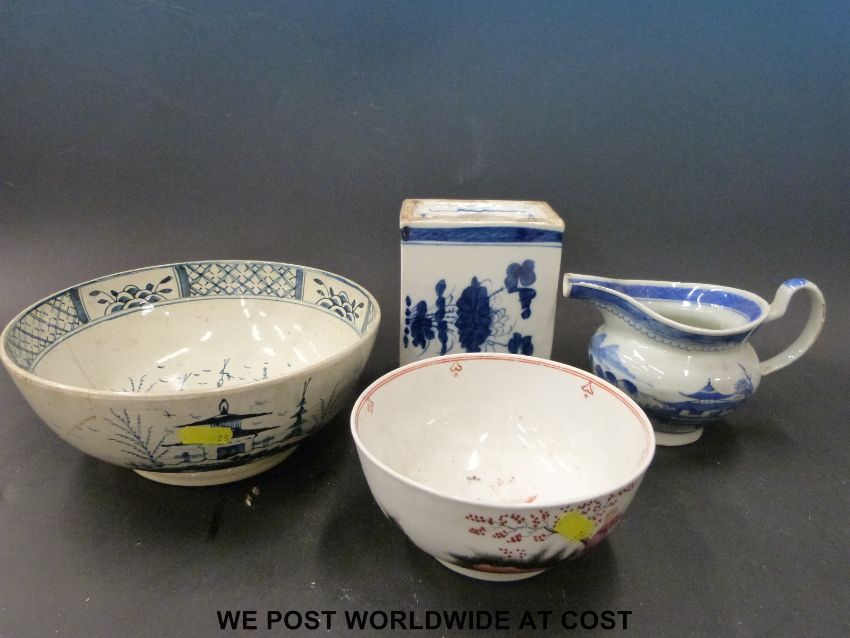 A collection of Chinese porcelain to include two bowls, a jug and a rectangular incense burner