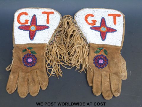 A pair of native American beaded gloves