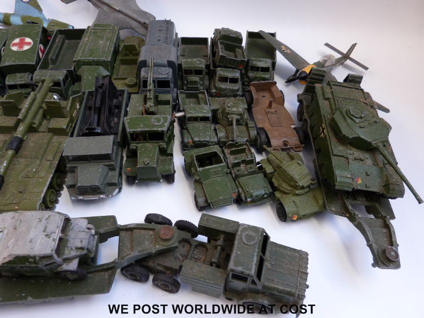 Thirty five Dinky toys and Dinky Supertoys diecast model military vehicles including areoplanes, tanks etc.