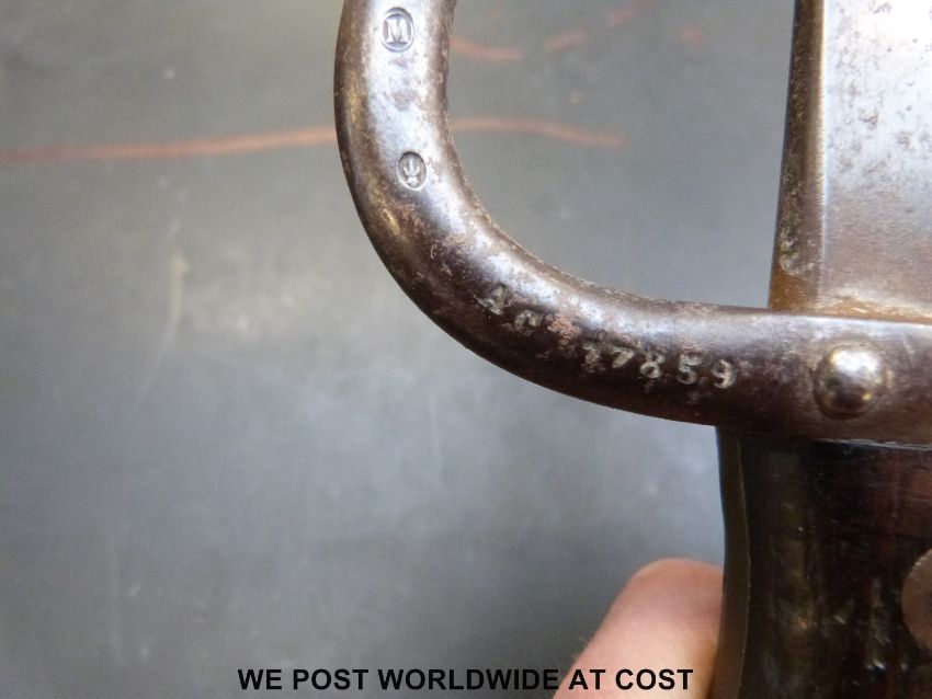 A French bayonet dated 1880 with blunt end, possibly for training
