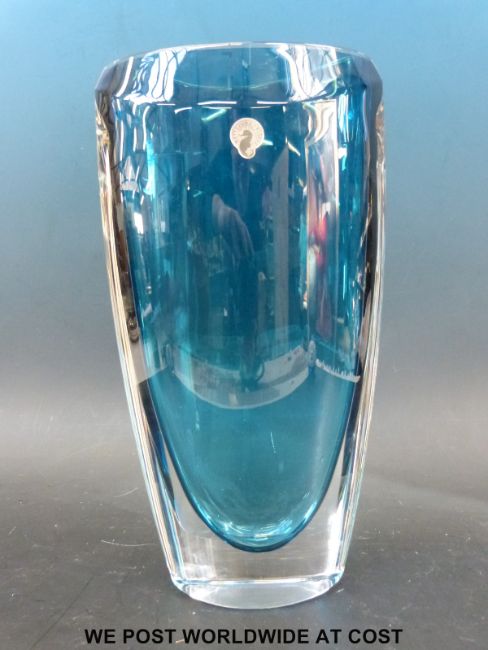 A Waterford Crystal turquoise vase (33cm tall)