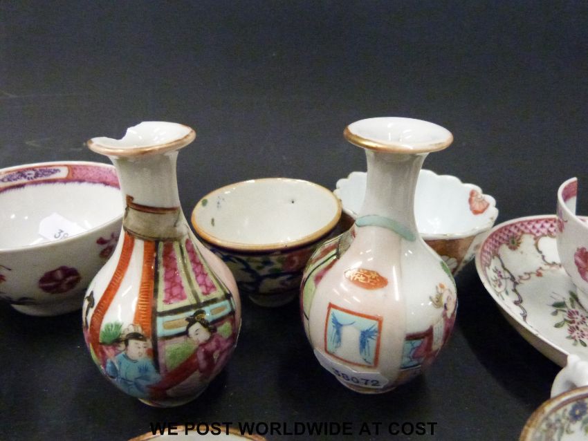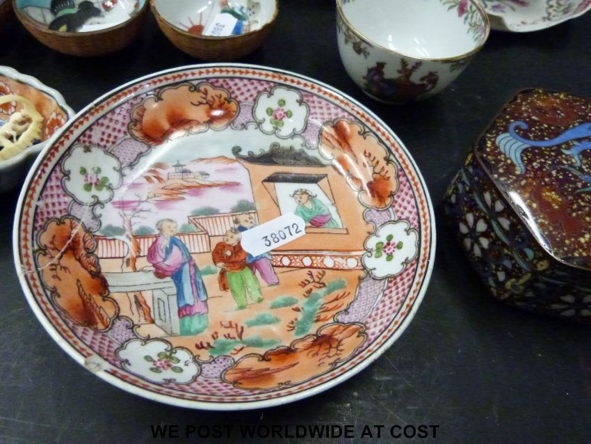 A collection of 18th/19thC and later Chinese and Japanese tea bowls and saucers, vases, lidded cloisonne pot etc