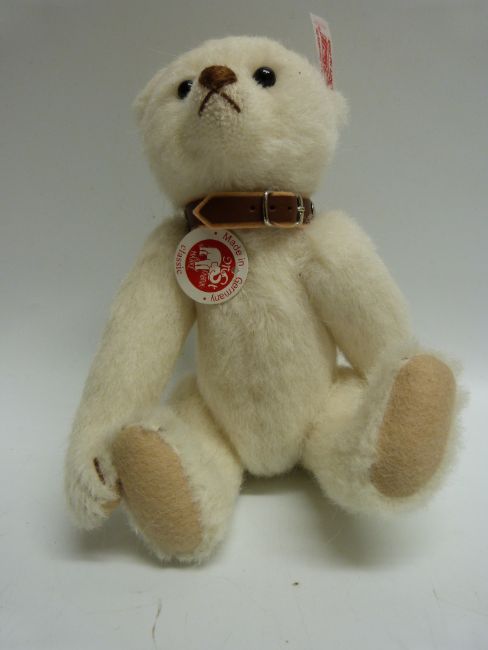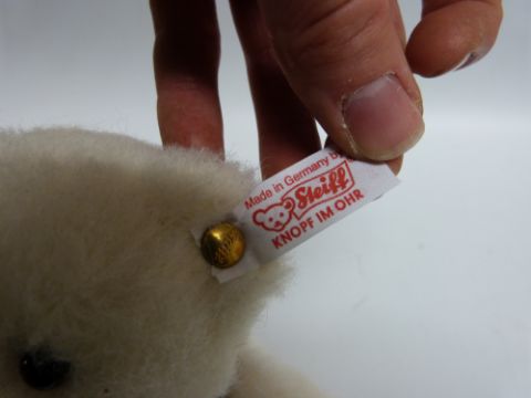 Steiff Original Teddy Bear 'Strauss, The Rattle Bear', 668494, with white mohair, button to ear, tags and certificate 205/1500, 10in tall, in original Steiff bag