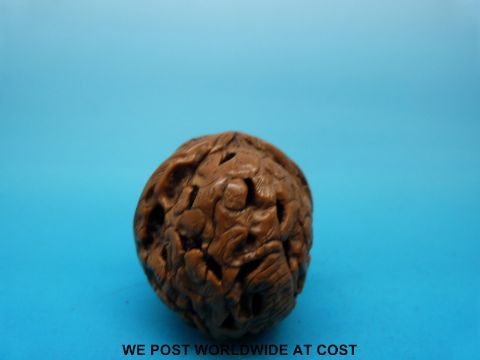 A Japanese Meiji period walnut netsuke with carved decoration