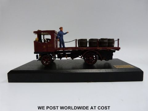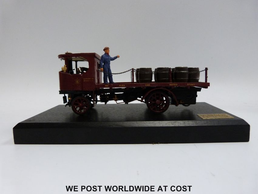 Bassett-Lowke limited edition diecast model Northampton Brewery Company Steam Lorry on wooden display plinth.