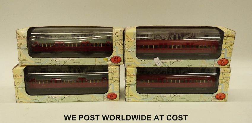 Four Exclusive First Editions (EFE) 00 gauge diecast model London Tube trains, all in original boxes