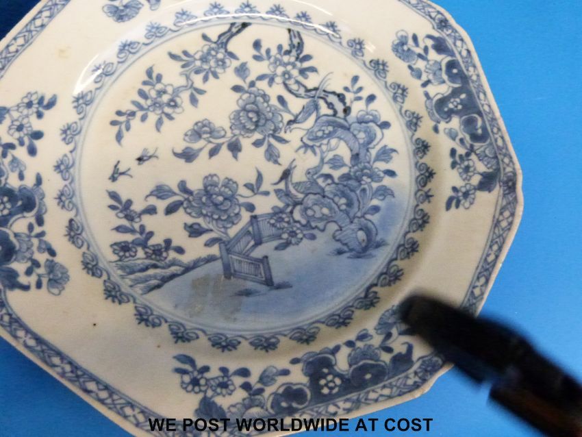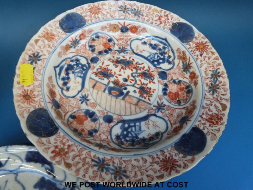 Two 18th/19thC Chinese blue and white plates, an Imari plate and two others