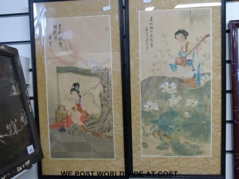 A pair of Chinese watercolours of young women with calligraphy and seal mark