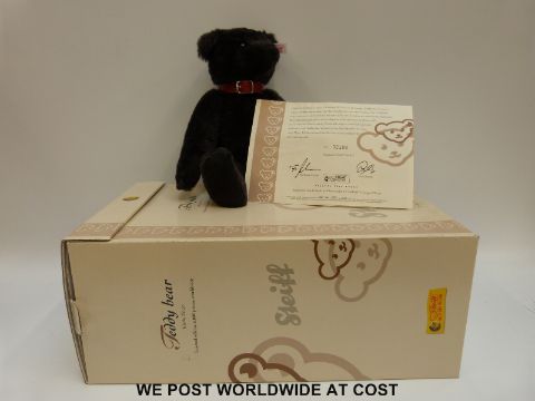 Steiff Original 'Teddy Bear', 038150, with black mohair, button to ear, tags and certificate 2189/3000, 32cm tall, in original magnetic close box