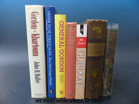 A collection of books relating to General Charles George Gordon (Chinese Gordon/Gordon of Khartoum) including Life of General Gordon by the author of 'Our Queens' (London, Walter Scott Ltd, c.1900); John H.Walker, Gordon of Khartoum: The Saga of a Victorian Hero (New York, Atheneum, 1988); Richard Garrett, General Gordon (London, BCA, 1974); John Pollock, Gordon: The Man Behind the Legend (Oxford, Lion Publishing, 1993); Roy MacGregor-Hastie, Never Taken Alive; A Biography of General Gordon (London, Sidgwick and Jackson, 1985) etc