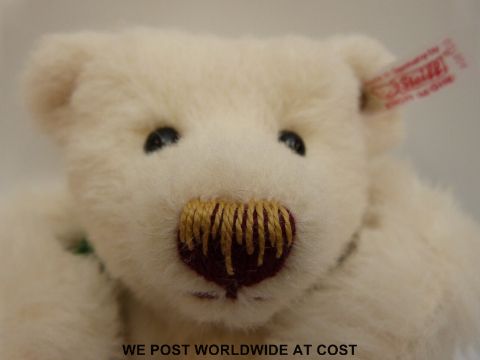 Steiff Original 'Christmas Teddy Bear', 037504, with white mohair and musical mechanism, button to ear, tags and certificate 1181/2000, 30cm tall, in original magnetic close box