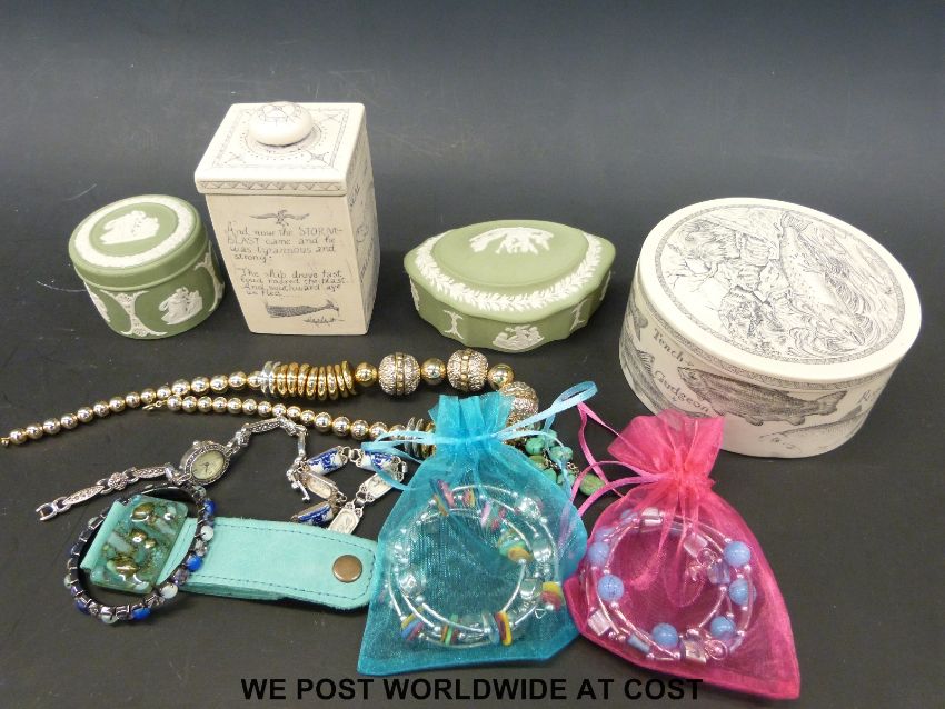 A quantity of ceramics to include Wedgwood Jasperware, Crown Burslem & Poole pottery bowl together with a small selection of costume jewellery
