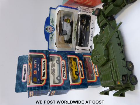 A Triang Minic Bentley Continental in original box, a Burago Mercedes, Matchbox Toys, Dinky tank transporter etc