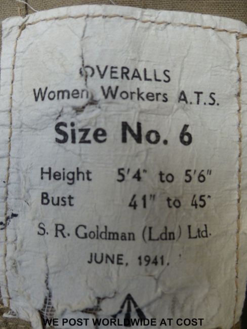 Three items relating to WWII comprising Air Ministry signalling mirror No 6E/271 with leather strap together with a Evets & Co., sailor's cap dated 1942 and women workers A.T.S overalls size 6 by S.R.Goldman Clond Ltd., dated 1941