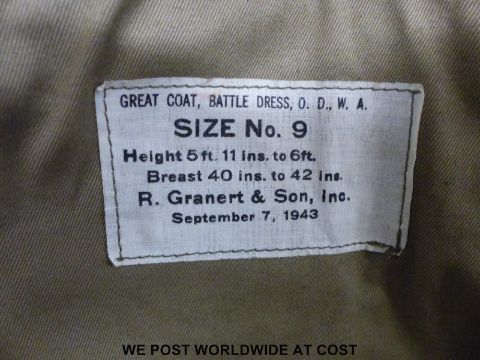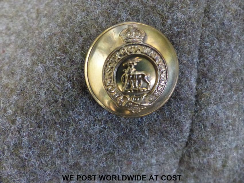 A khaki field greatcoat with buttons for the Royal Lincolnshire Regiment