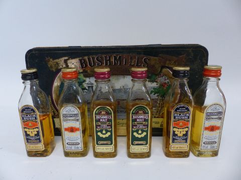 Three whisky miniature (50ml) box sets comprising Classic Malts of Scotland including Talisker 10 year, Lagavulin 16 year, Glenkinchie 10 year, Dalwhinnie 15 year, Cragganmore 12 year and Oban 14 year; Bushmills including 10 year and Whiskies of the World (America, Scotland and Ireland) comprising 18 in total (one Black Bush in the world set is empty)