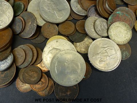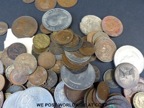 A collection of sundry coinage to include Victorian farthings, bronze pennies, medal coins, trade tokens etc