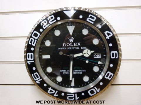 Rolex advertising clock black Submariner style with date, and with sweeping quartz movements