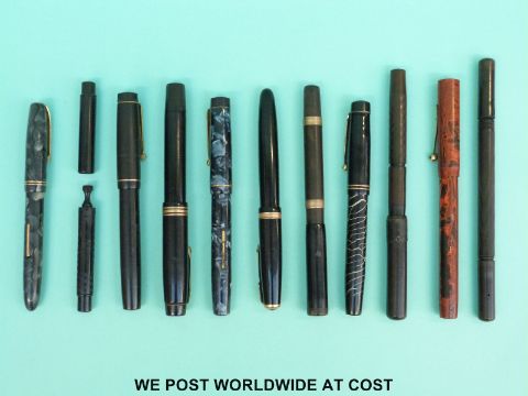 A collection of fountain pens to include Duro pen, Conway Stewart Burnham No.56, Savoy, Parker Duofold, Onoto-Magna (ten in all)