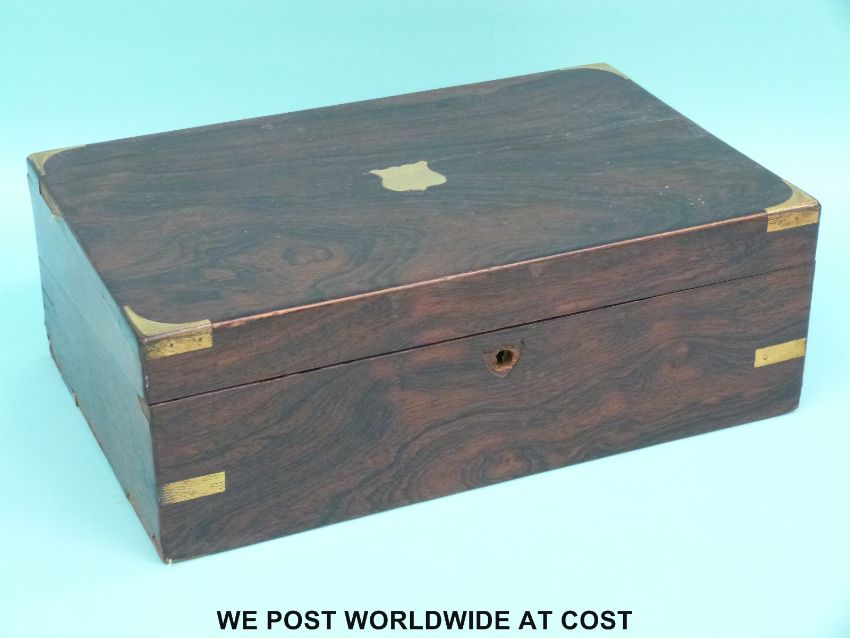 A 19thC brass-bound and inlaid rosewood writing slope (W32xD22xH12cm)