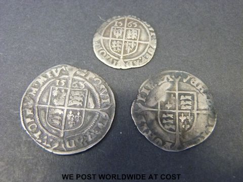 Elizabeth I 1568 sixpence, a groat and a 1565 threepence