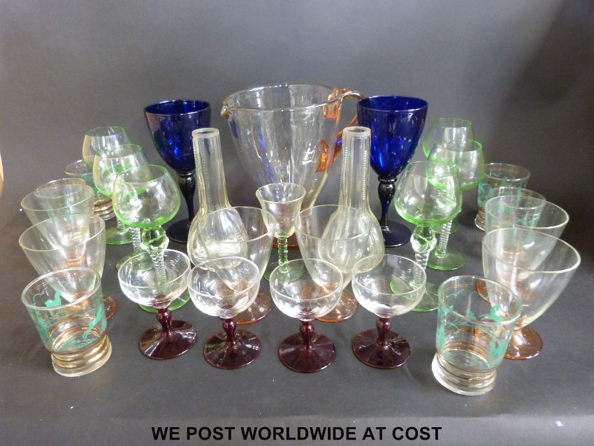 A collection of glassware including lemonade set, Victorian vases etc