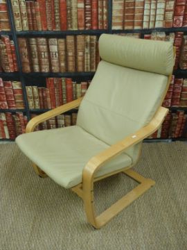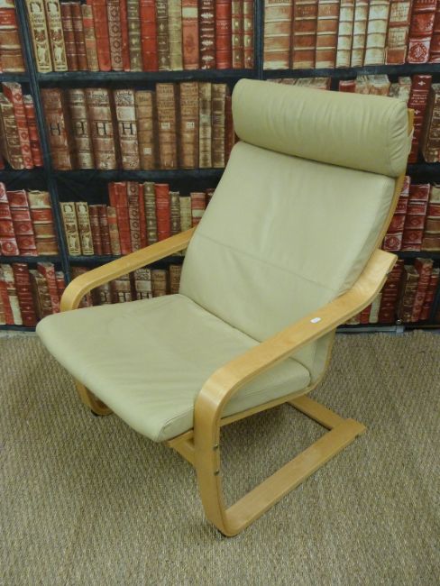 Two contemporary leather effect chairs and footstools