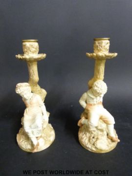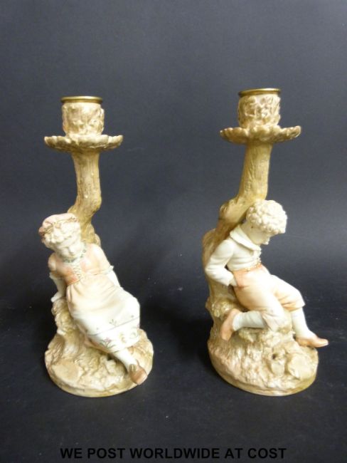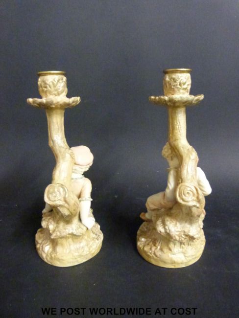 A pair Royal Worcester figural candlesticks with puce mark (22.5cm tall)