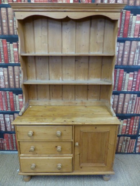 A small pine dresser with three drawers and a single cupboard (H192xW106xD46cm)