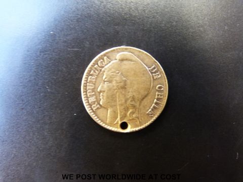 A gold 1896 holed cinco pesas, 3g