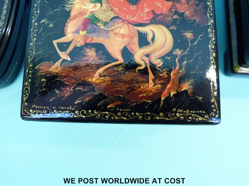 Three signed Russian lacquer boxes, the largest height 13.5cm