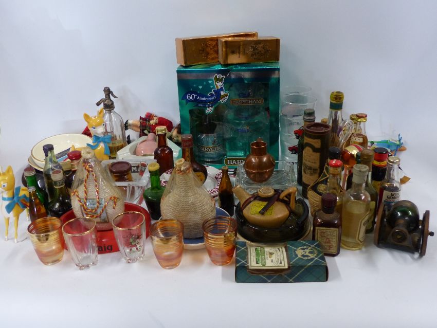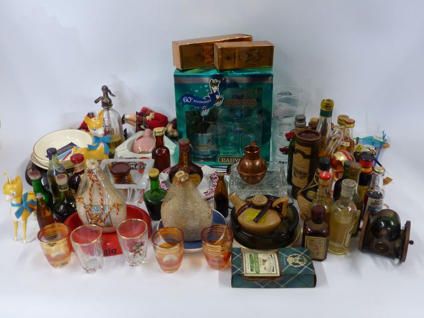 A collection of miniatures including whisky, Babycham glasses etc