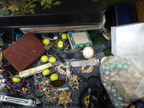 A large quantity of costume jewellery to include a faux pearl, faux pearl necklaces, brooches etc